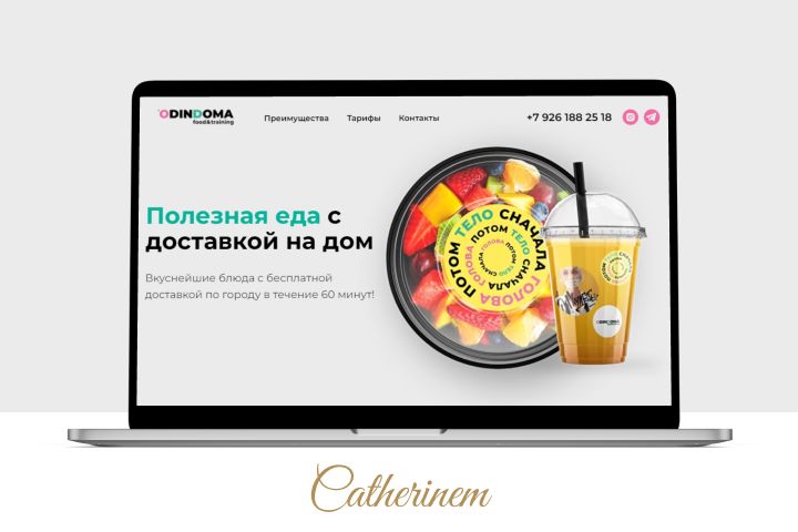 Современный, стильный сайт для доставки полезной еды. Первый экран сделан в Zero-блоке Тильды, остальное - стандартные блоки в фирменном стиле. Сайт адаптирован под все устройства.