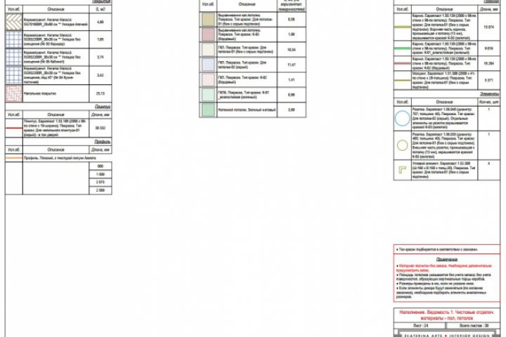 Ведомость материалов. Пол, потолок