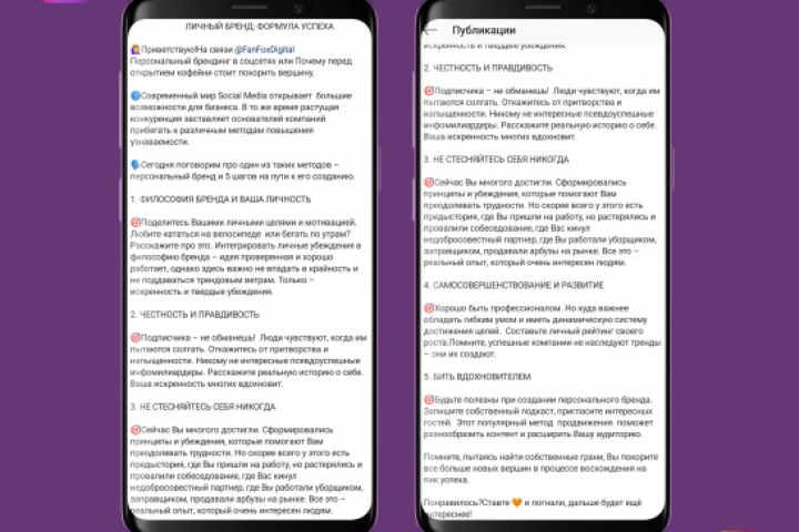 В заказчика была задача сделать добротный пост на тему личного бренда. Условия - сделать текст уникальным на 100%. Задача успешно сделана.