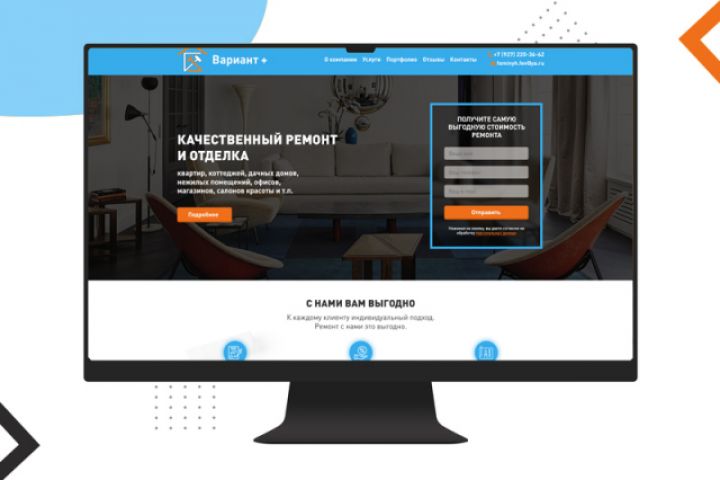 Для проекта «Вариант + - Ремонт помещений» разработана целевая страница — LandingPage. В работу входило создание дизайна, произведена адаптивная вёрстка и посадка на CMS WordPress.