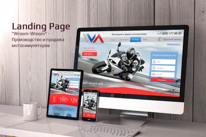 Landing Page для продажи мотосимуляторов. Разработка дизайна + адаптивная верстка + посадка на движок(Mod X).