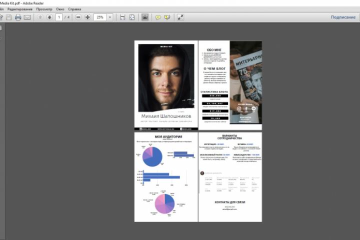 Media Kit для презентации перед рекламодателями с анализом активности и ЦА блогера.