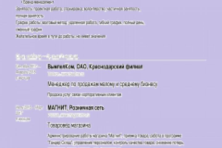 Для просмотра полной версии резюме, кликайте ссылку на Head Hunter. Ваше резюме будет еще лучше!