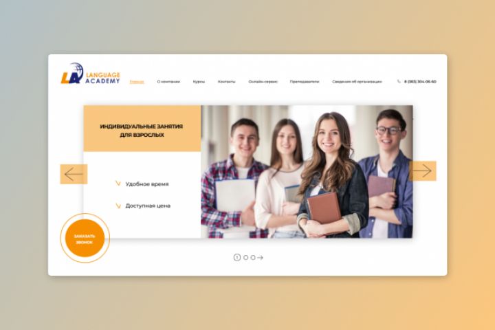 Первая страница многостраничного сайта для школы иностранных языков.