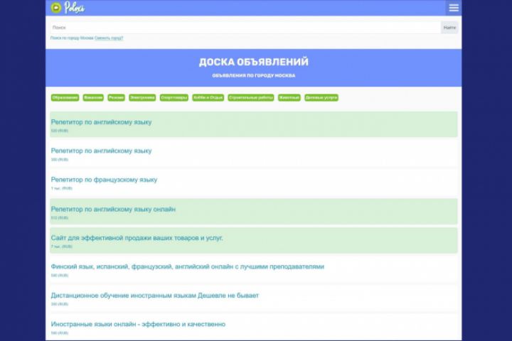 Доска объявлений Poloxi.ru была разработана мной в этом году, работа по продвижению и программированию дополнительных функций ещё идёт. Сайт круто оптимизирован под поисковые системы GOOGLE и Яндекс. (Скрин в доказательство от google pagespeed прилагаю)