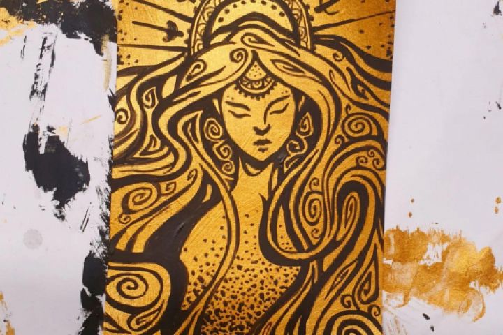 Графика на золотом покрытии. Эффектные контрастные композиции под любой формат (высота примера 8 см).