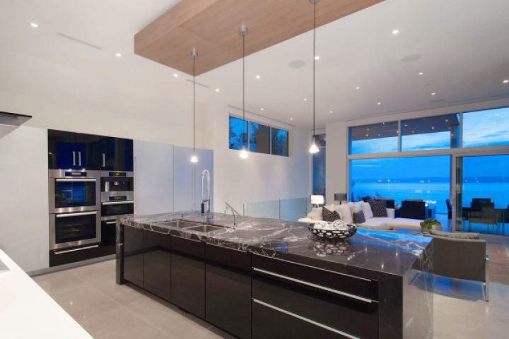 Светлая просторная кухня с панорамными окнами