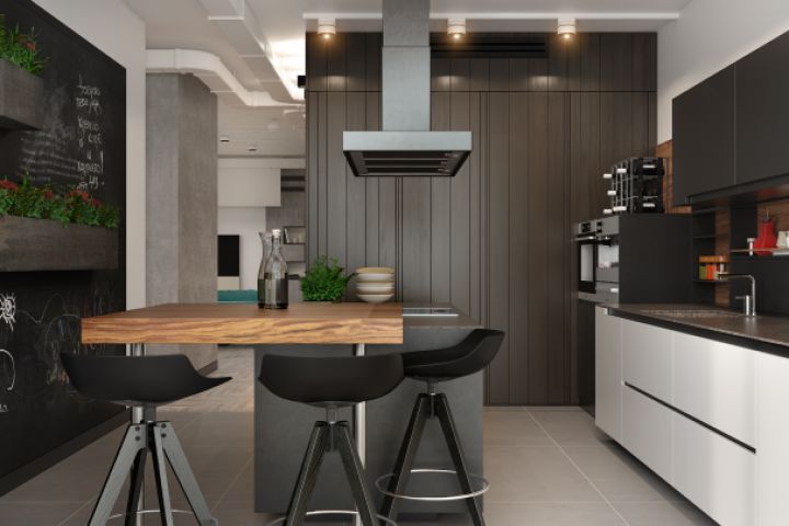 Кухня в стиле ХайТек с добавлением деревянных элементов