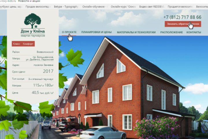 Дизайн сайта_квартал таунхаусов "Дом у Клена"