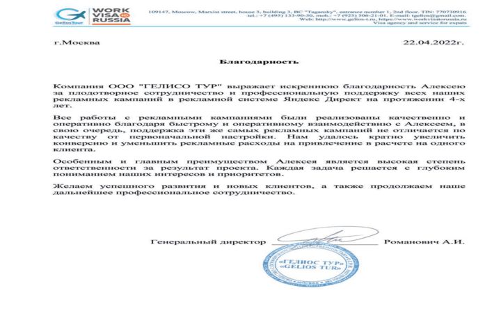 Отзывы 2022г. Проекты: "Разрешение на работу. Оформление виз для иностранцев"