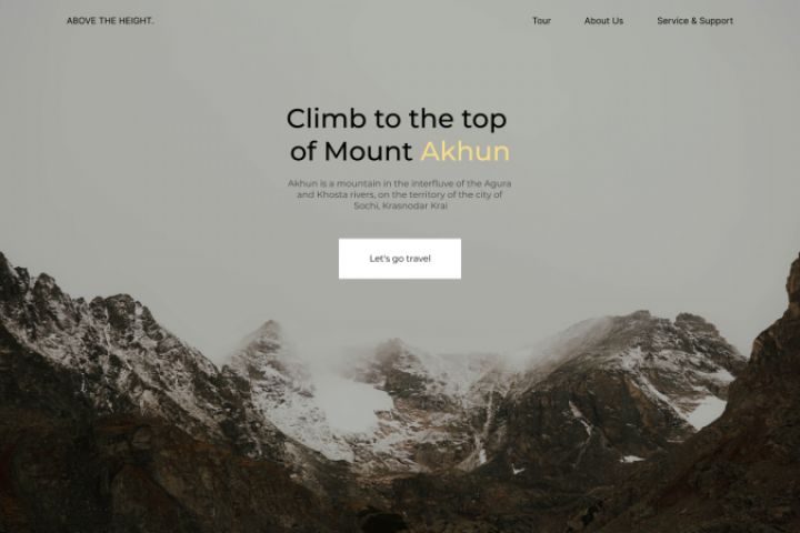 Концепт дизайн сайта, предоставляющего услуги туров. Figma, Photoshop