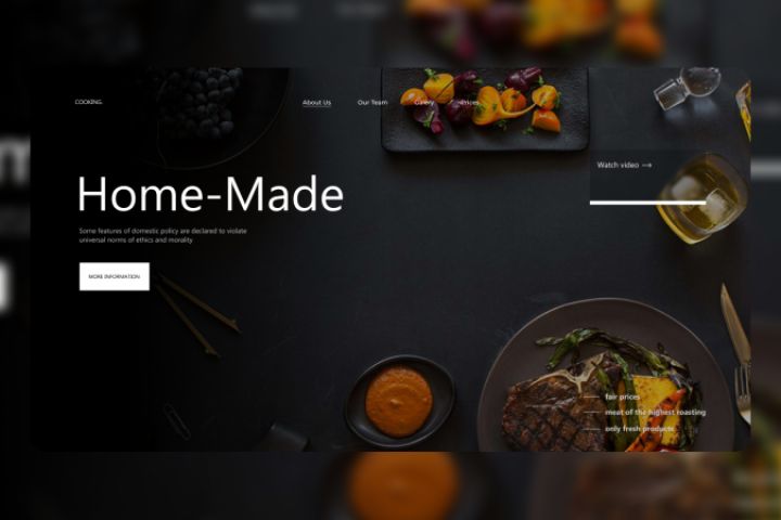 Концепт дизайн первой страницы сайта ресторана. Figma, Photoshop