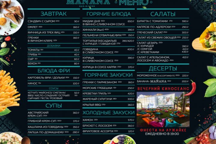 Меню для ресторана