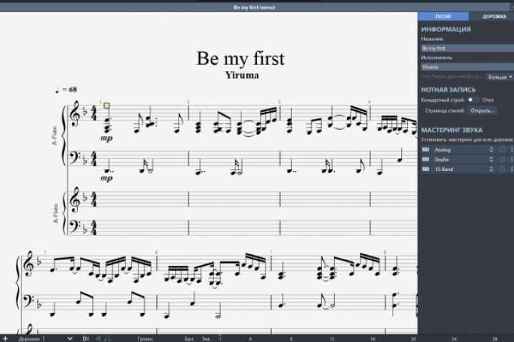 Ноты были подобраны на слух c оригинальной записи. (пример: https://www.youtube.com/watch?v=0uDyHA-BERs) Запись того как звучит подобранное произведение в т.ч. в программе guitar.pro: https://www.youtube.com/watch?v=CAVBxXPdWQ4