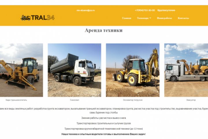 Лендинг по аренде спецтехники