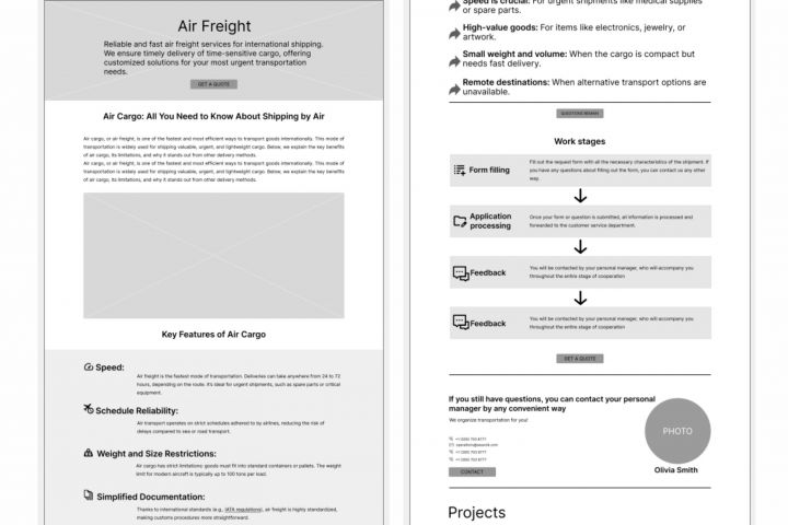 Разработка прототипа страницы для раздела сайта логистической компании (USA)