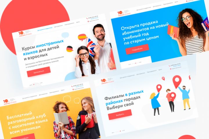 Задача — сделать редизайн сайта студии, переделать структуру на более удобную и понятную. Сделать дизайн современным, разработать новый страницы, такие как «Преподаватели», «Услуги и цены», «Филиалы»