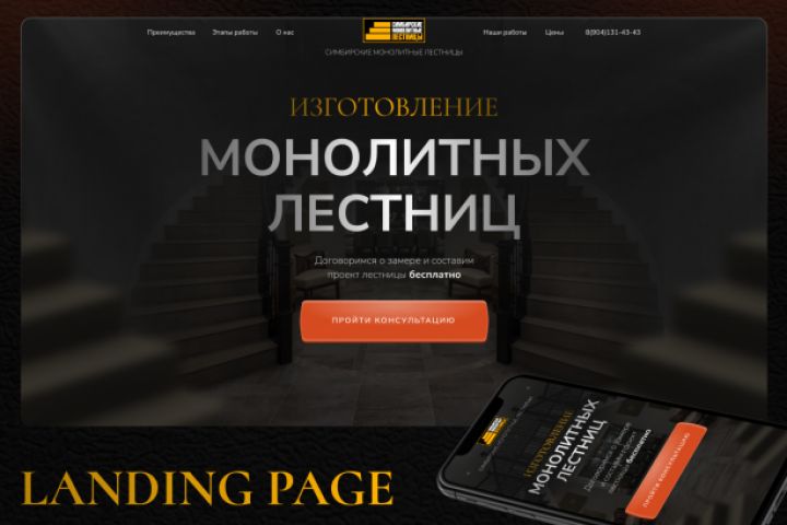 Разработка лендинга под ключ на Тильде для человека, который занимается изгототвлением лестниц на заказ.