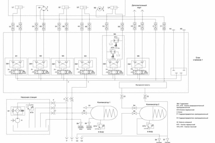 Гидравлическая схема системы, выполненная по ГОСТ.