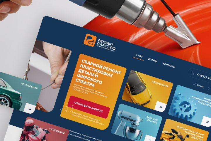 Одностраничный сайт для мастерской по ремонту автомобильного, бытового и производственного пластика.