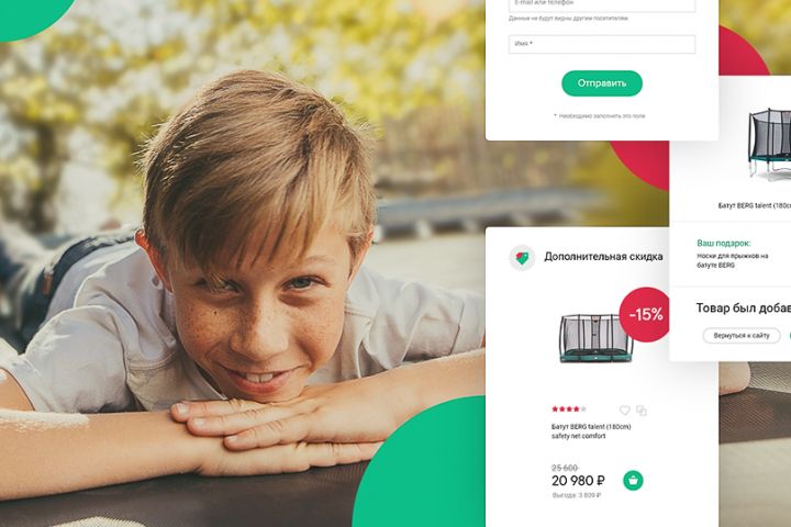- фильтр товаров в каталоге по параметрам: категория, производитель, цена, диаметр батута, макс. вес пользователя;