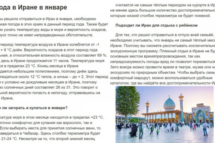 Погода в Иране в январе