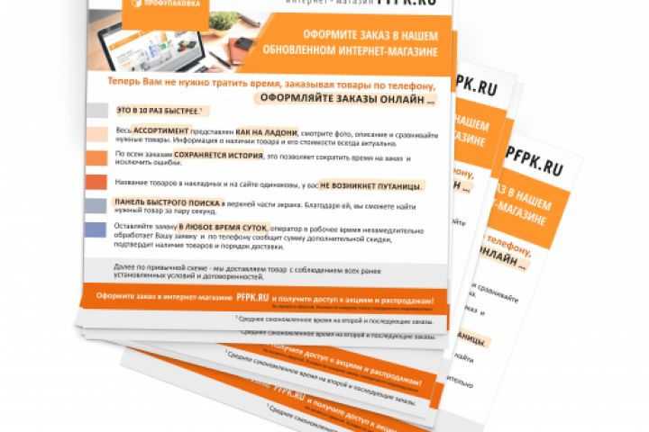 Дизайн листовок для компании по продаже пластиковой упаковки. Задача: донести до потенциальных покупателей наличия нового интернет-магазина.