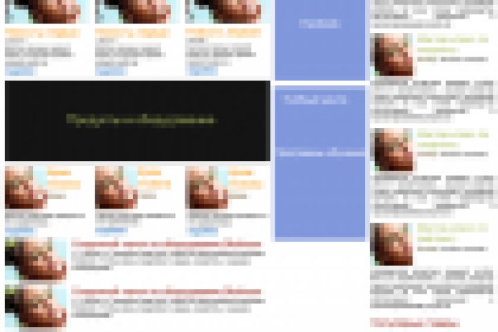 Пример того, как заказчики хотят разместить всё обо всём на главной странице. Отрисовано с наброска заказчика. Черные и синие блоки для рекламы. Баннеры еще не отрисованы.