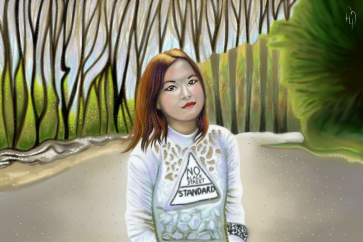 2D цифровой портрет девушки, созданный в приложении 'Medibang'.