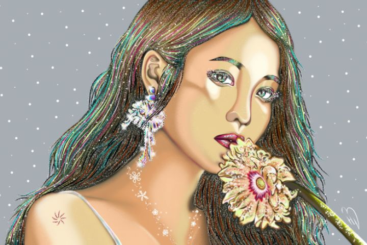 2D цифровой портрет корейской актрисы,модели, певицы и автора песен - 'IU', созданный в приложении 'Medibang'.