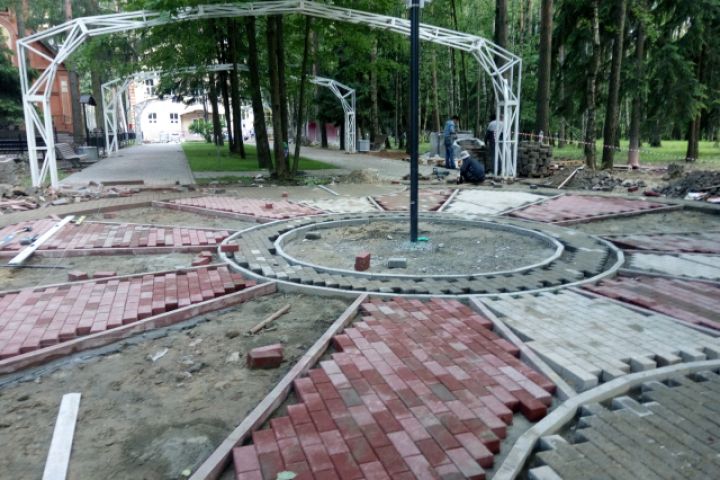 Укладка брусчатки, установка МАФов. Домодедово, парк Елочки. Авторский надзор за строительством.
