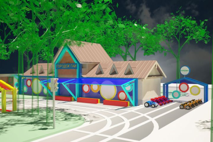 Концепт проект реконструкции и модернизации Городка ГАИ в парке Елочки в Домодедово. В проекте полная проработка генплана и сооружений городка.