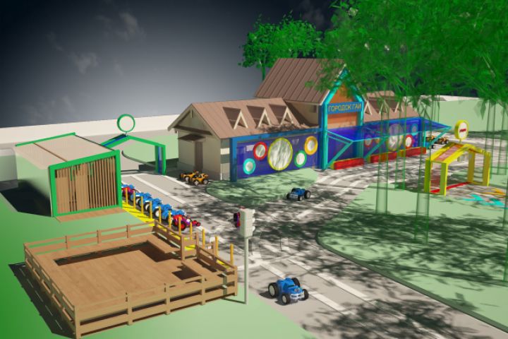 Концепт проект реконструкции и модернизации Городка ГАИ в парке Елочки в Домодедово. В проекте полная проработка генплана и сооружений городка.