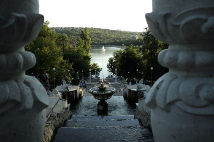 Вид на озеро с высоты белой лестницы. Кишинёв. Молдова