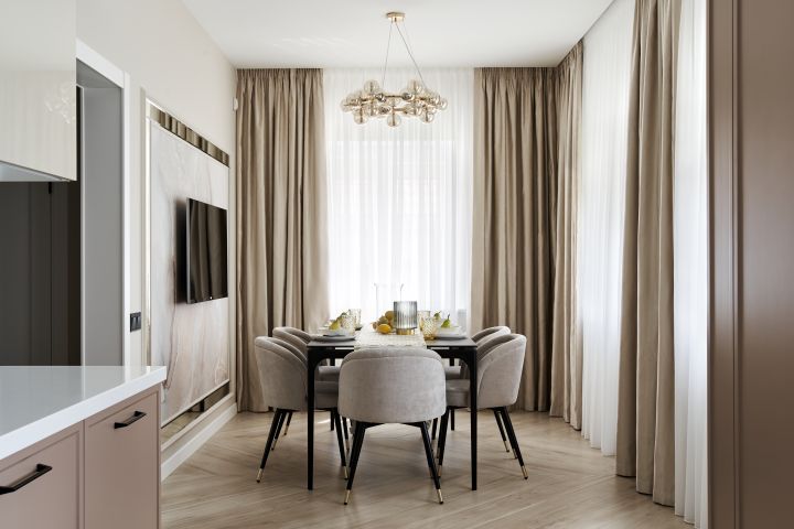 Реализация проекта кухни, фотосъемка. Зона столовой.
