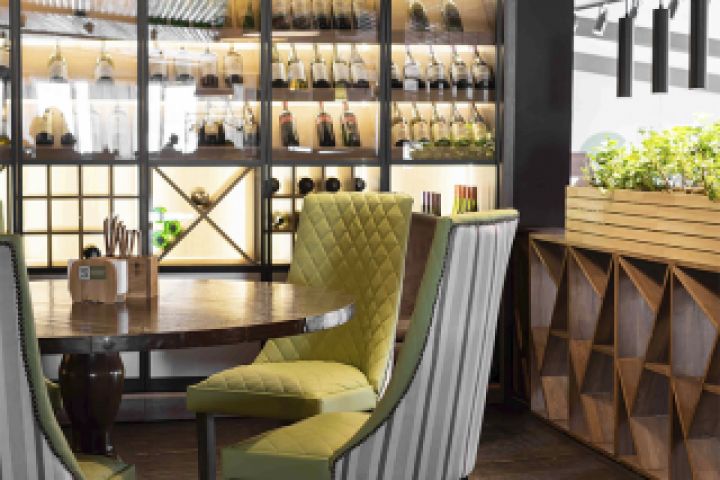Фотография реализованного проекта. Дизайн винного шкафа в ресторане на горнолыжном курорте.