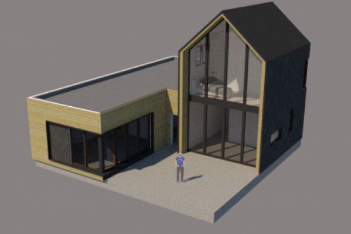 Модель компактного дома в стиле барнхаус.
