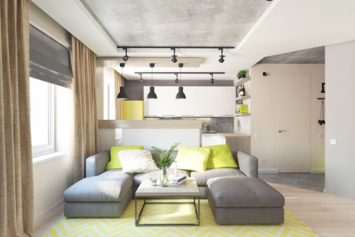 Дизайн студии для молодого парня с применением бетона и декоративного кирпича. Стиль Лофт.