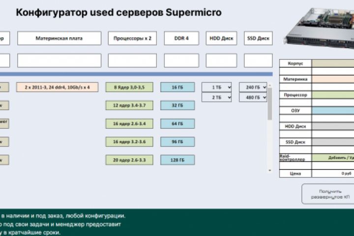 Главная страница сайта - Конфигуратор сервера под заказ.