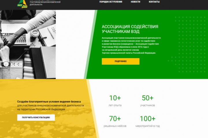 Комбинированный лендинг. Отдельный раздел новости, контакты.