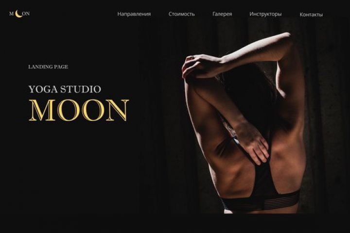 Лендинг студии по йоге. Основные моменты: в тёмных тонах, чтобы мелькал цвет логотипа. Формат JPG.