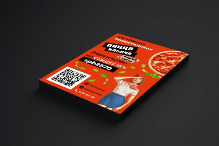 Разработка дизайна скидочного купона для пиццерии "Пицца Ильича" Выполнено в графическом редакторе Figma