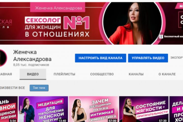 Мы с моей командой помогали Женечке оформить ее YouTube канал и оптимизировать видео.