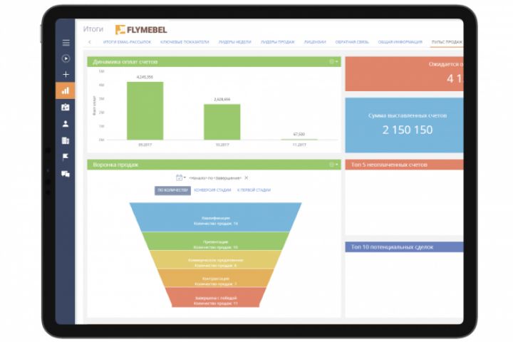 • Разработали отдельный личный кабинет с доступом к статистике продаж, бухгалтерии, актуальных вопросов к производству согласно роли сотрудника в компании (от рядового менеджера до руководителей подразделений и генерального директора);