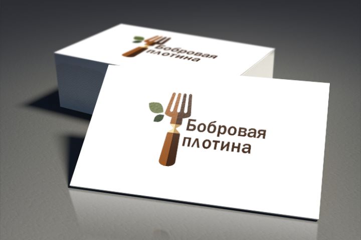 Аккуратный логотип для ресторана на воде. Вилка имитирует бревно которое "отточил" бобер.
