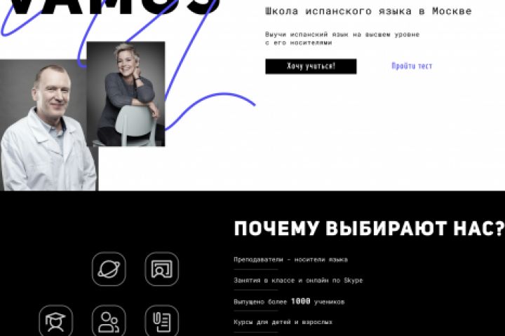 Здесь я делал два пробника главной страницы для сайта по изучению испанского языка. Минимализм и геометризм