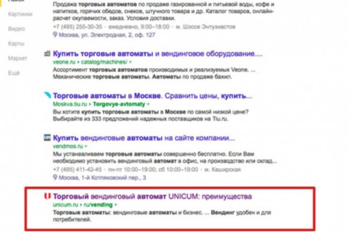 Продвижение крупного производителя торговых, вендинговых и кофейных автоматов.