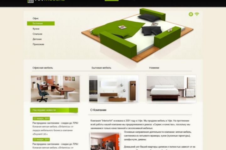 Создание сайта салона Арт-мебель. Верстка и установка на CMS Modx.