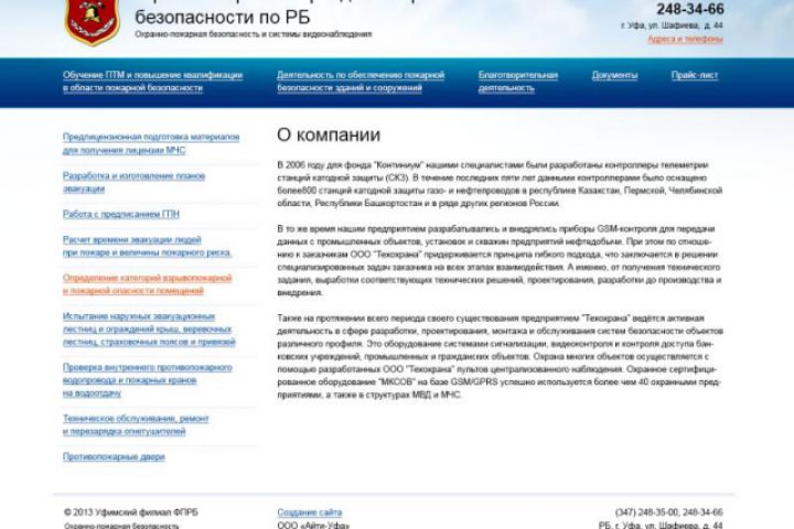 Корпоративный сайт Филиала Фонда Пожарной Безопасности. Верстка и установка на CMS Modx.