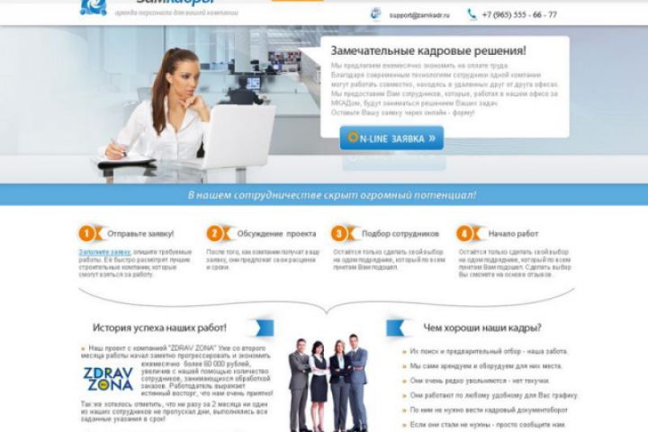 Создание сайта кадрового агентства Замкадры. Вёрстка и программирование.